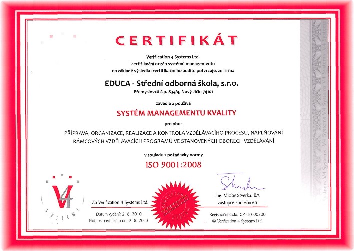 EDUCA - Střední odborná škola, s. r. o. poskytuje služby v oblasti vzdělávání tak, aby byly optimálně uspokojeny potřeby zákazníků, tj. žáků a rodičů. Cílem školy je připravit pro výkon povolání všestranně vzdělané odborníky s potřebnými znalostmi, dovednostmi a kompetencemi, kteří se uplatní na trhu práce nejen v regionu Moravskoslezského kraje, ale v působnosti celé republiky, eventuálně v zahraničí. Škola si klade za cíl nabídnout v regionu kvalitní podmínky pro přípravu na budoucí povolání zájemcům o zaměstnání v obchodních organizacích, organizacích zabývajících se cestovním ruchem, IT společnostech, v administrativě, službách nebo připravit absolventy ke studiu na vysokých školách.